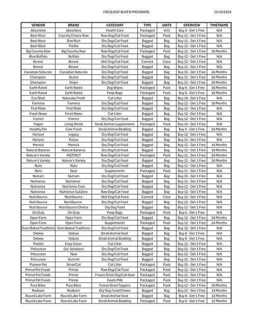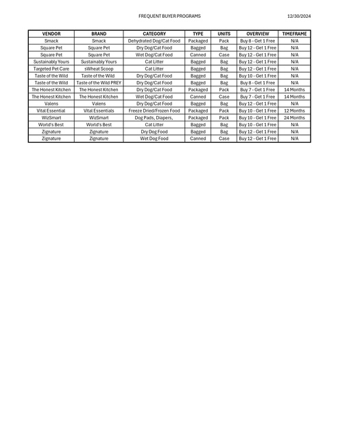 FREQUENT BUYER PROGRAMS AVAILABLE